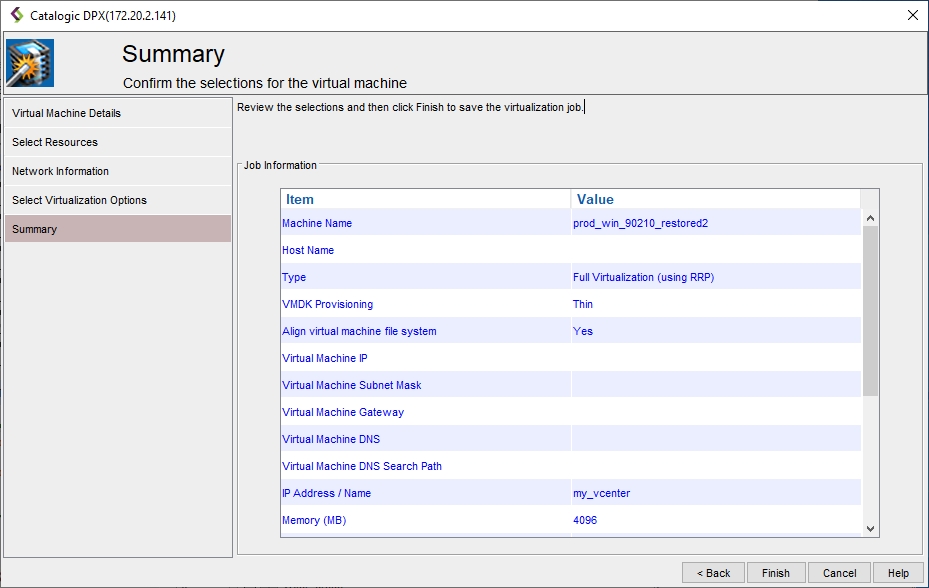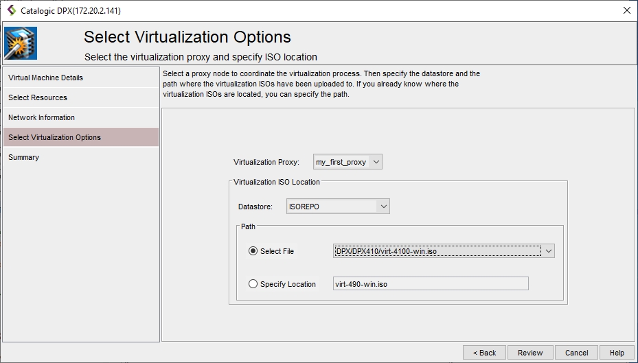 Select the virtualization proxy server. For more information, see DPX Proxy Server.