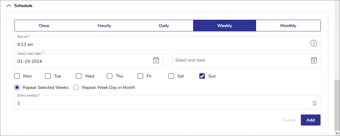 Important. When specifying a schedule, make sure the Delete the restore job on successful completion toggle is switched off. Otherwise, the job will be deleted upon its first successful completion.
