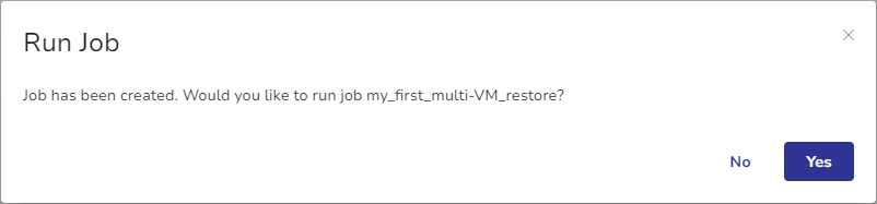 The following Run Job dialog is shown when saving the Multi-VM Restore job.