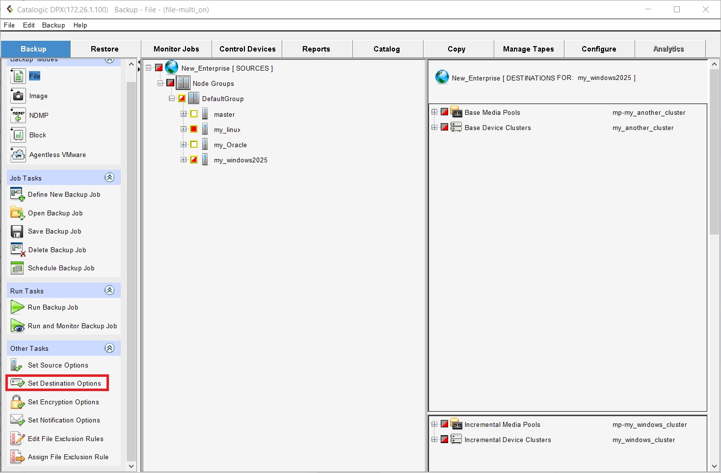 Scroll down and select Advanced Options > Destination Options. You can separately set destination options for base, incremental and differential backup.