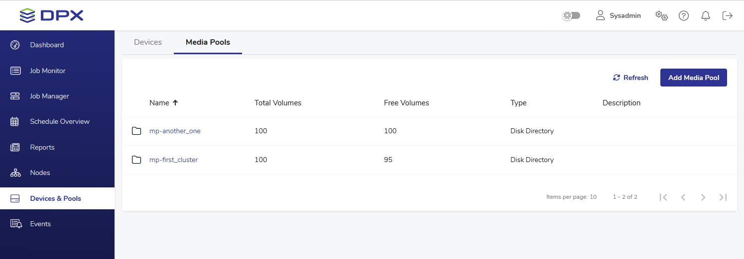 Media volumes in DPX are physical storage units such as tape cartridges or Disk Directories to which data can be backed up or duplicated. They have unique volume names and must be members of a media pool.