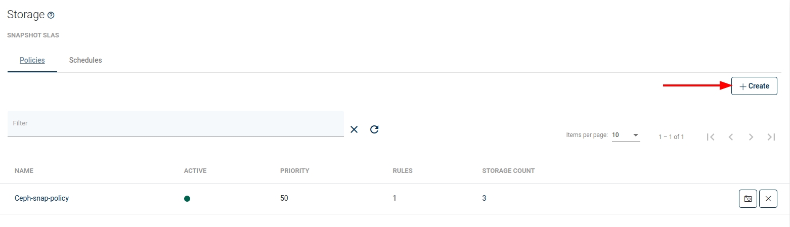 Go to Snapshot SLAs under the Storage section and create a new Snapshot Management policy:
