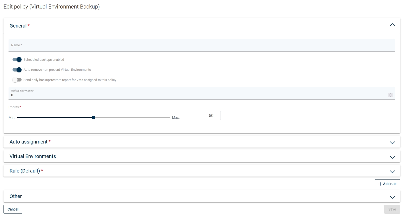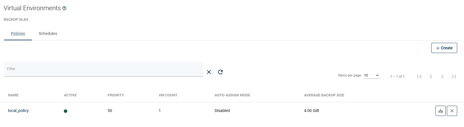 To create a new backup policy, open the Backup SLAs tab under the Virtual Environments section and click on