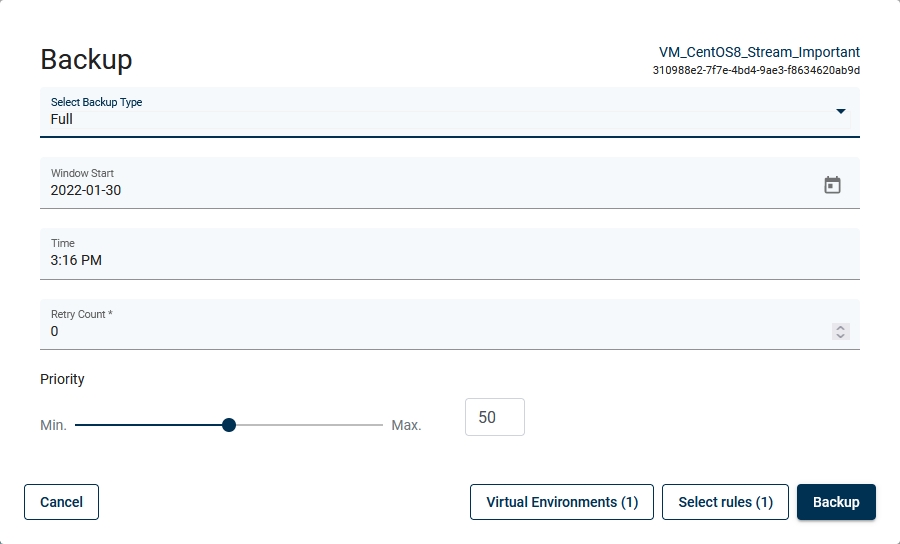 Finally select a backup type, backup destination, when a task should start, priority, and click on the backup button.