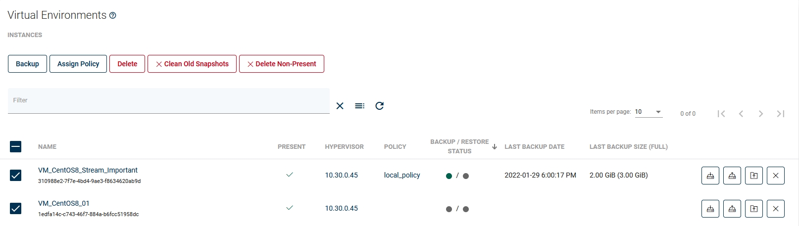 To perform on-demand backup go to the Instances tab under the Virtual Environment section.
