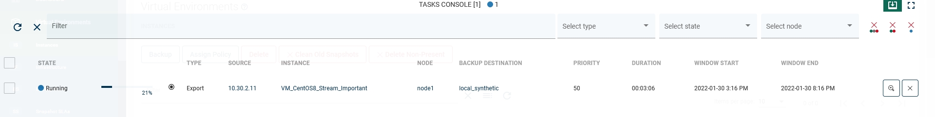 On the Tasks Console, you can see the progress of the backup task.