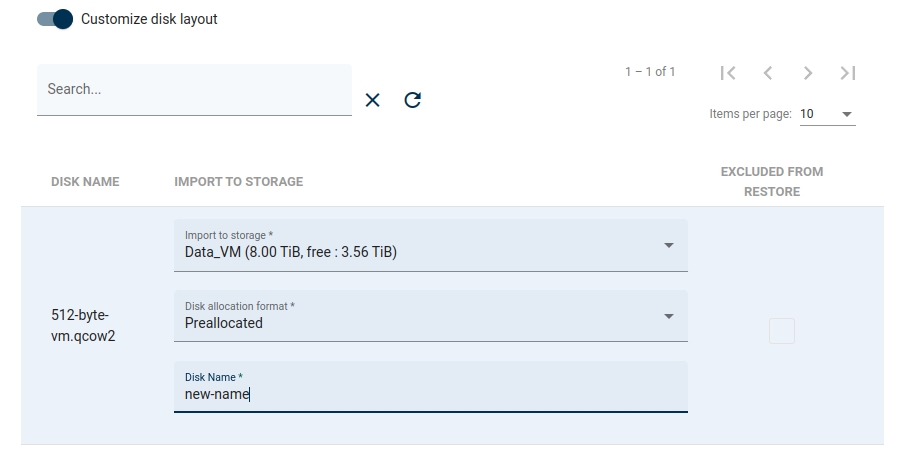 Restored with changed disk name