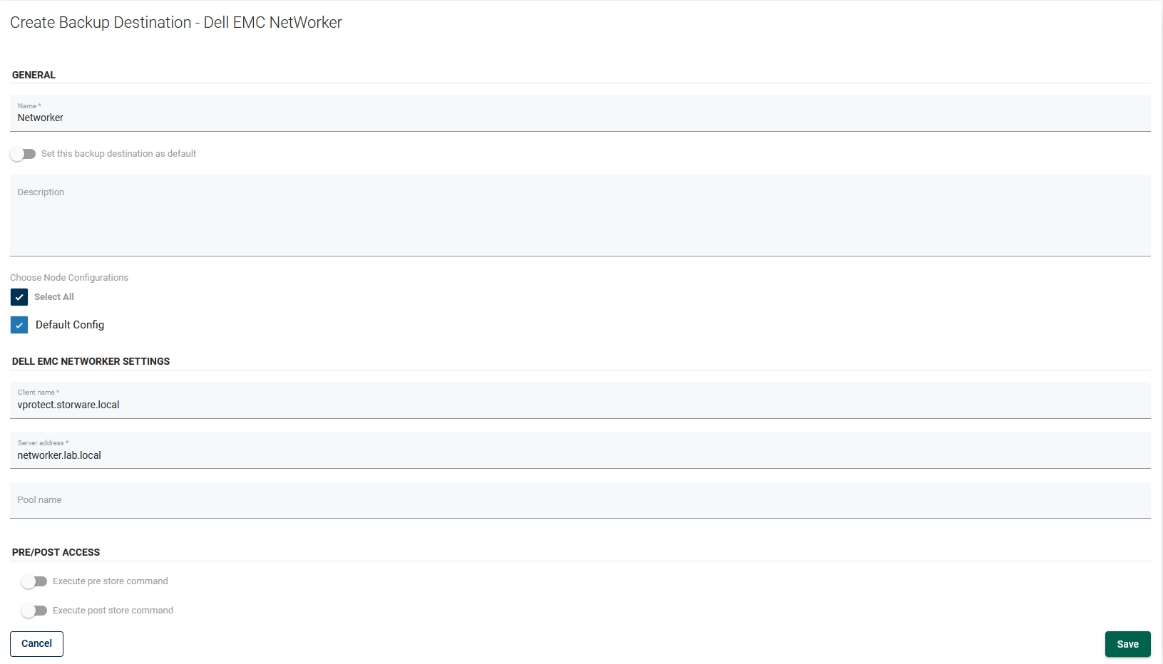 Log in to DPX vPlus and go to "Backup Destinations". Click on "Create Backup Destination" and choose "Dell EMC NetWorker". Type the name for the new backup destination and set the retention. Enter the Networker client name and the Server address.
