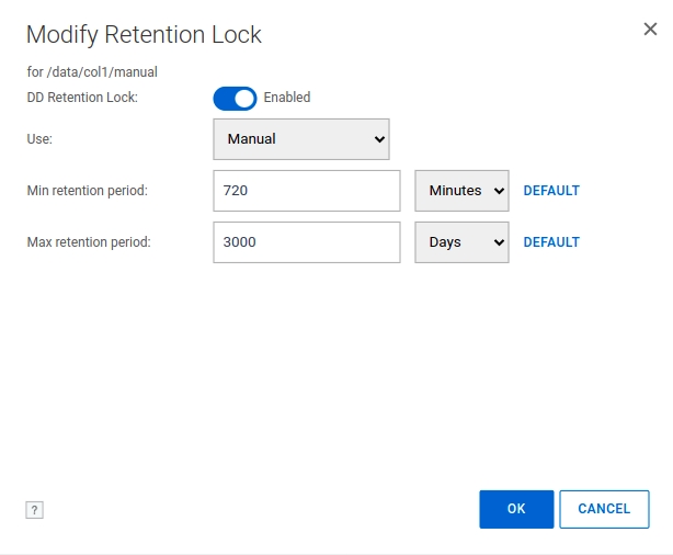 Retention lock option allows you to protect your backups from any changes for a certain number of days. It requires Data Domain retention lock to be enabled. It must be set to Manual mode and allow you to set the required retention lock (it is limited by Data Domain):