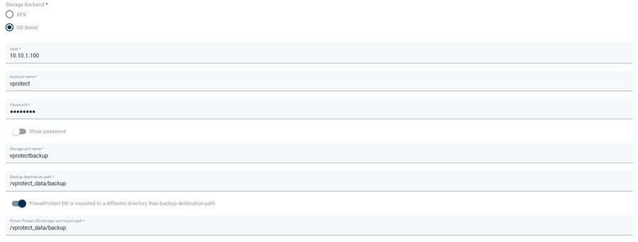 The DD mount path (or Storage path, in case only a Storage path is set) must point to the mount point of boostFS with the corresponding Storage Unit (see setting up boostFS).