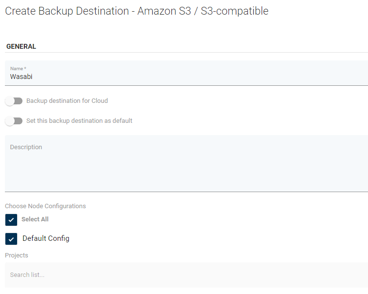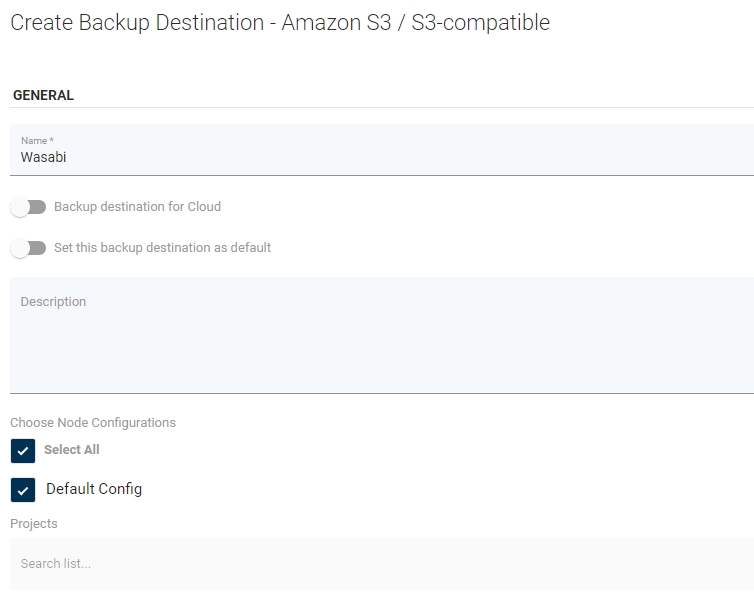 Wasabi is an S3-compatible backup provider. Configuration as the backup destination is similar to AWS S3.