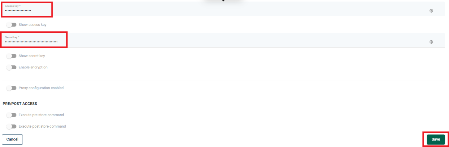 10. Provide Access key and Secret key.