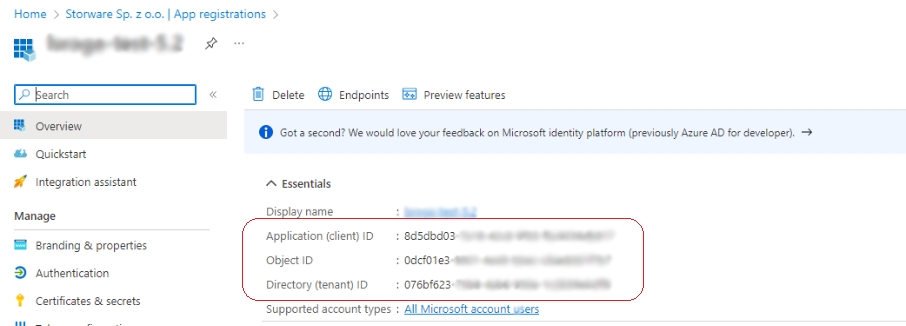 DPX vPlus Node requires the Application (client) ID, Client Secret, Subscription ID and Tenant ID to connect to the Microsoft Azure account.