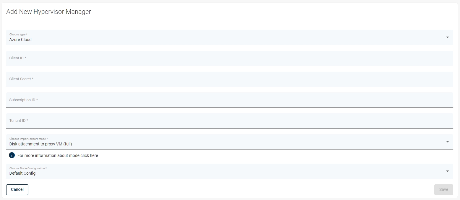 To properly configure your Azure Cloud account, go to DPX vPlus WebUI -> Virtual Environments -> Infrastructure -> Hypervisor Managers and click create button.