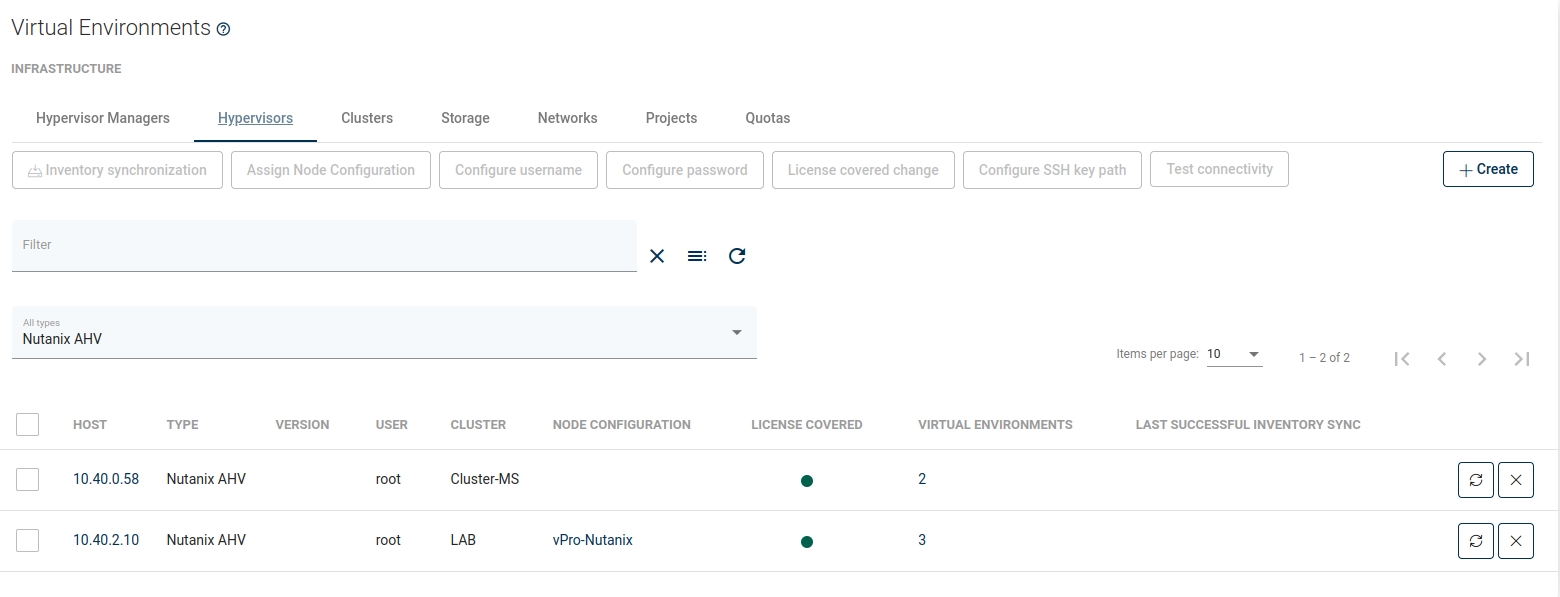 https://PRISM_HOST:9440/api/nutanix/v3Nutanix environments require the DPX vPlus node to be installed in one of the VMs residing on the Nutanix cluster. DPX vPlus should automatically detect the VM with the DPX vPlus node during the inventory synchronization operation.