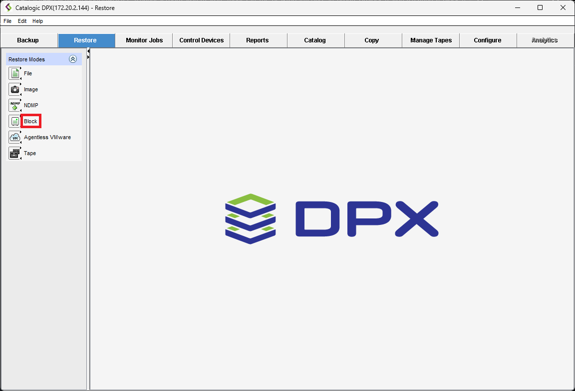 1. Select the Restore tab and click Block under Restore Modes.