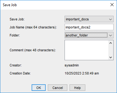 The new job name must be unique throughout the entire DPX, regardless of the folder the job is stored in.