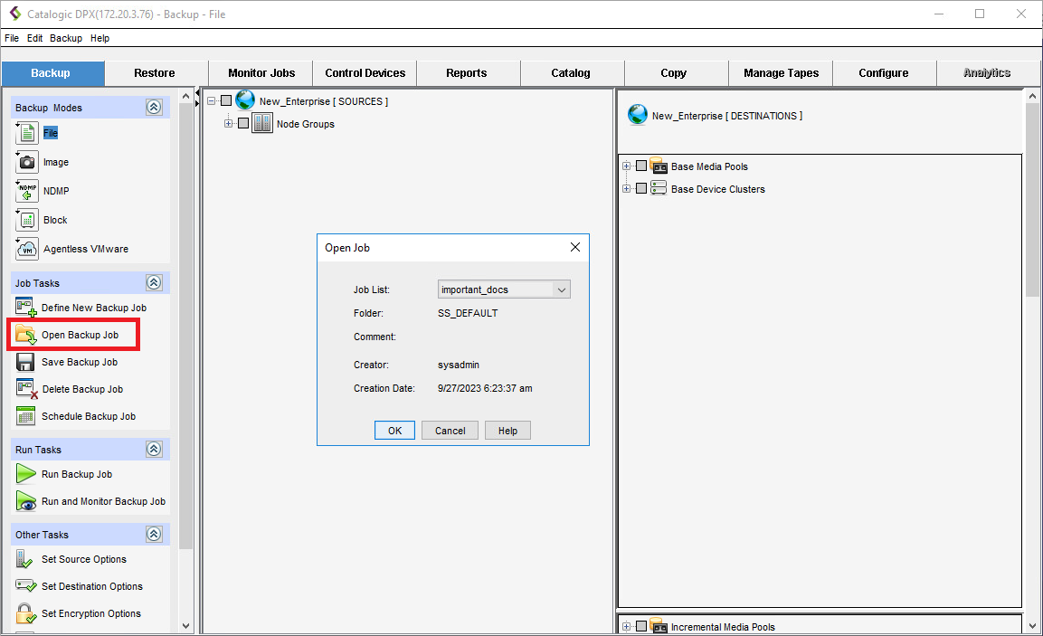 1. Make all required changes to the job definition. The workflow is the same as in Creating a File Backup Job.