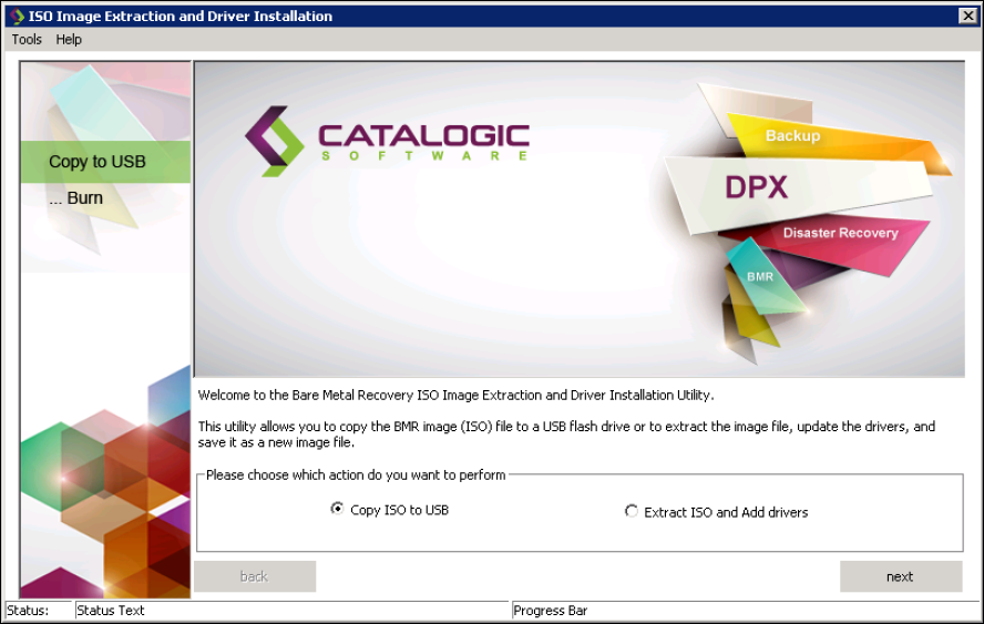 The BMR ISO Image Extraction and Driver Installation utility is used for either of two purposes: