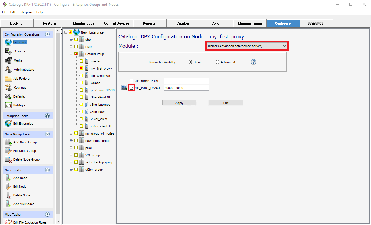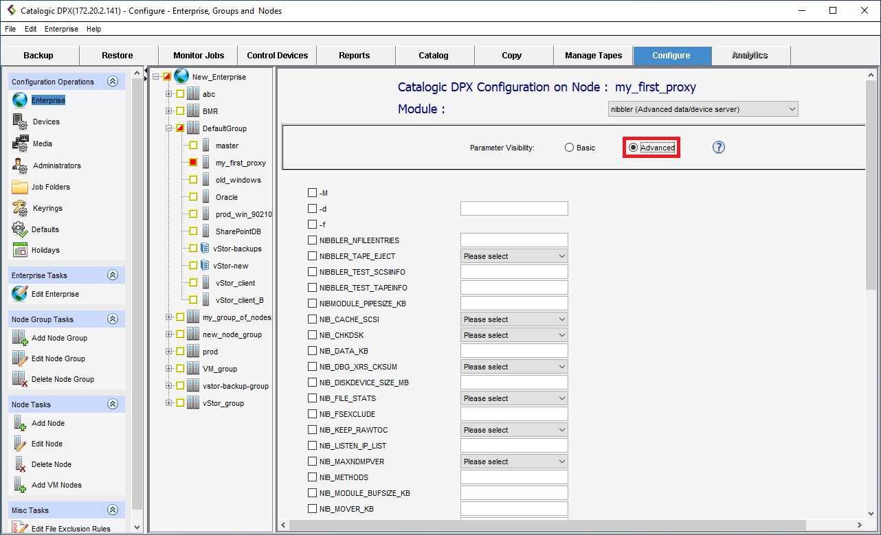 • The Parameter Configuration Interface supports all node types with the exception of NDMP-only nodes (such as Filers and UnixWare nodes).