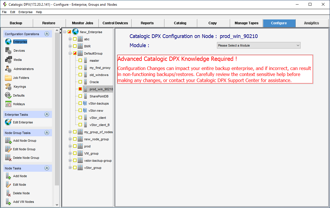 Before configuring parameters in Catalogic DPX, always contact Catalogic Software Data Protection Technical Support. Bad parameters can cause unanticipated consequences including backup failure. Moreover, some configurations can update registry entries, startup scripts, or system files; thus, incorrect parameters can also cause the related systems or applications to fail.