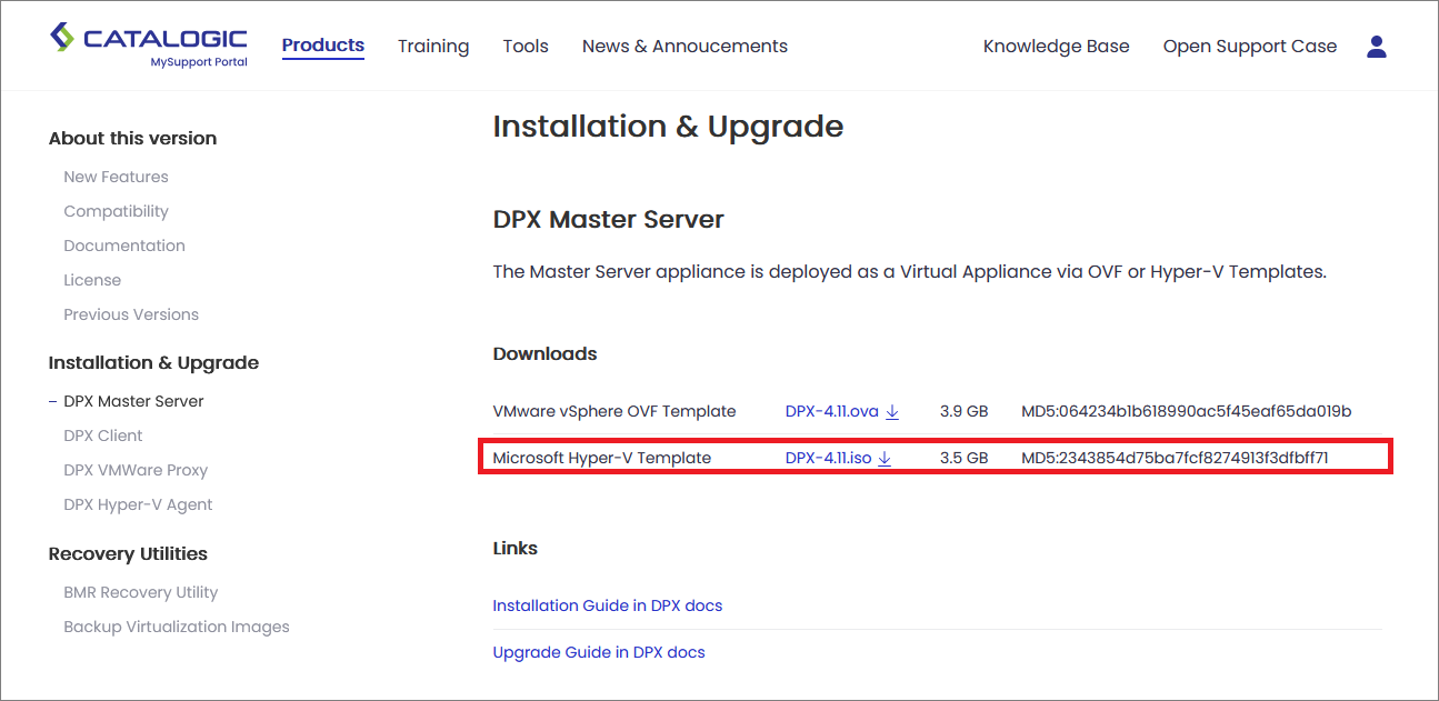 1. Download the .ISO file from the Catalogic MySupport page: