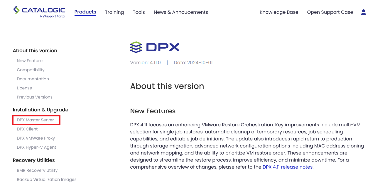 3. From the Installation & Upgrade section, select DPX Master Server.