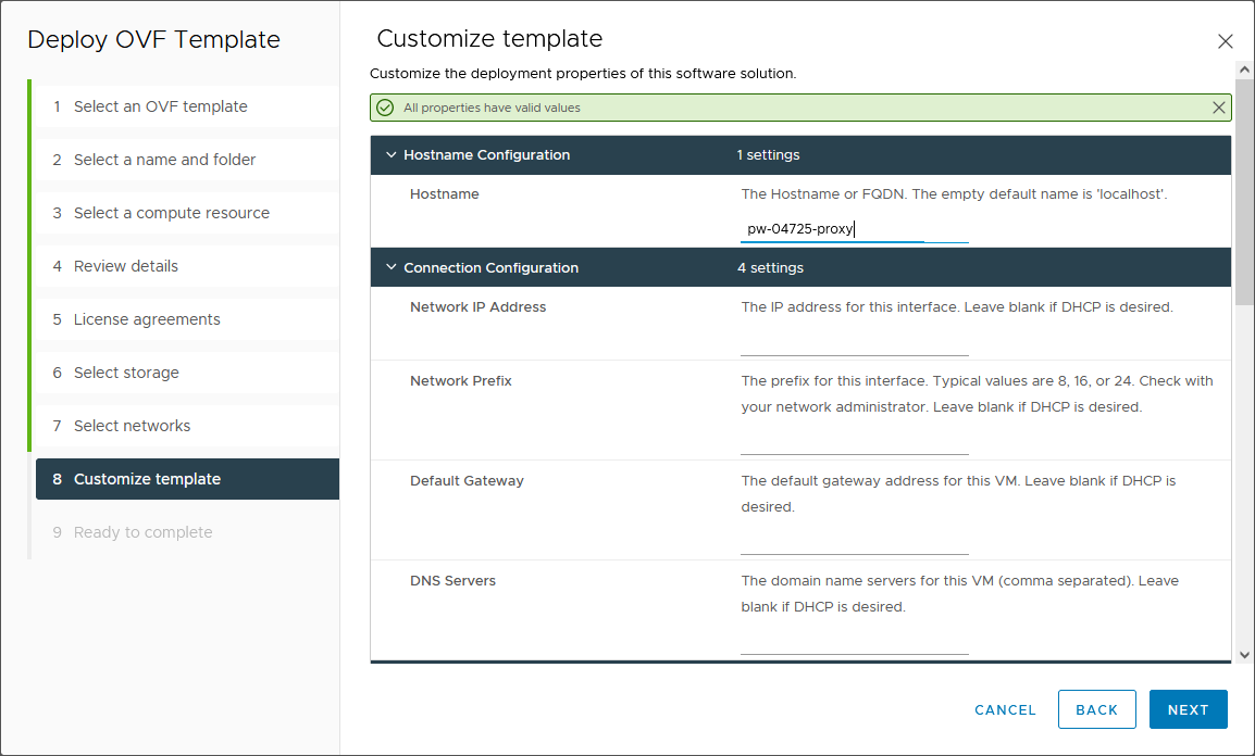 - Hostname: The hostname of this DPX Proxy Server virtual appliance. The hostname must be unique.