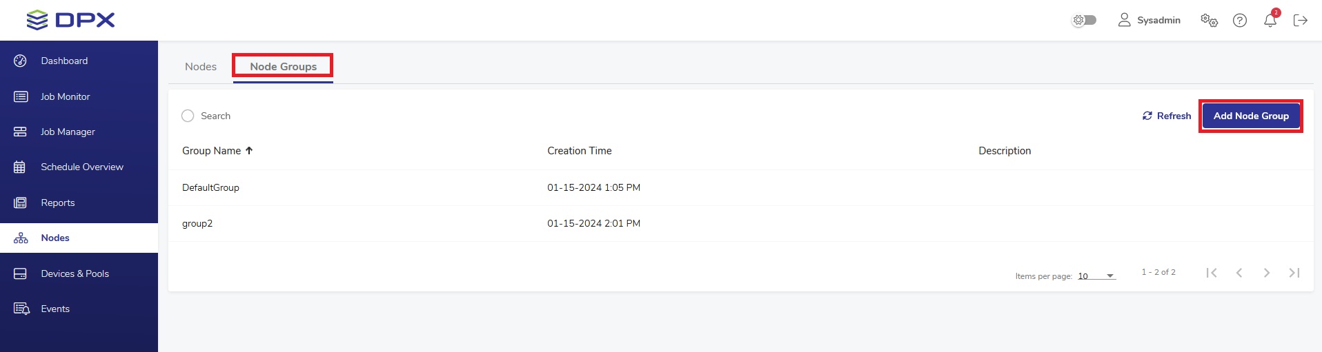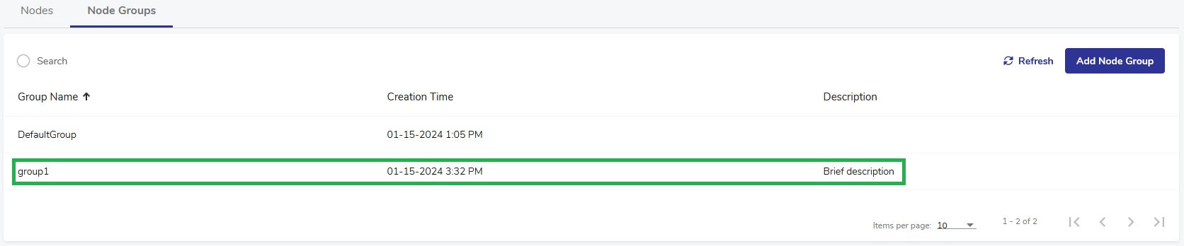4. Click Save. The Node Group is now added.