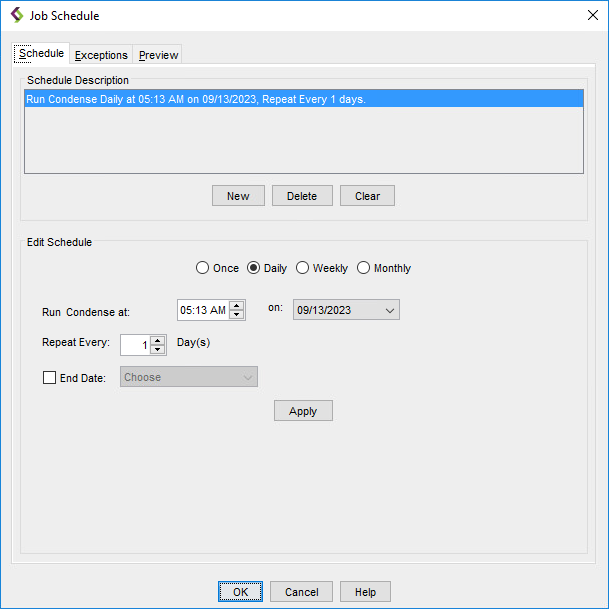 - To define additional exceptions for this job, click New, then repeat this part of the process.