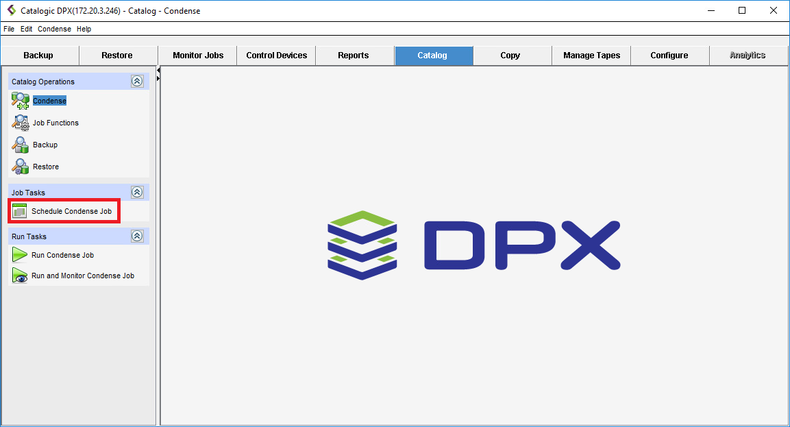 - Click Schedule Condense Job in the task panel to open the Job Schedule dialog box.