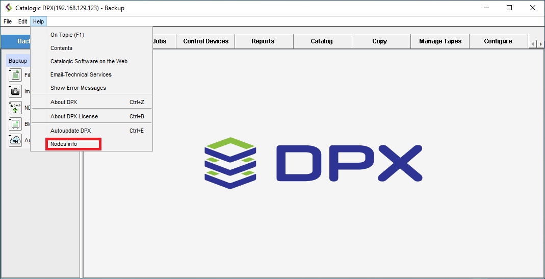 1. Click Help > Nodes info in the menu bar.