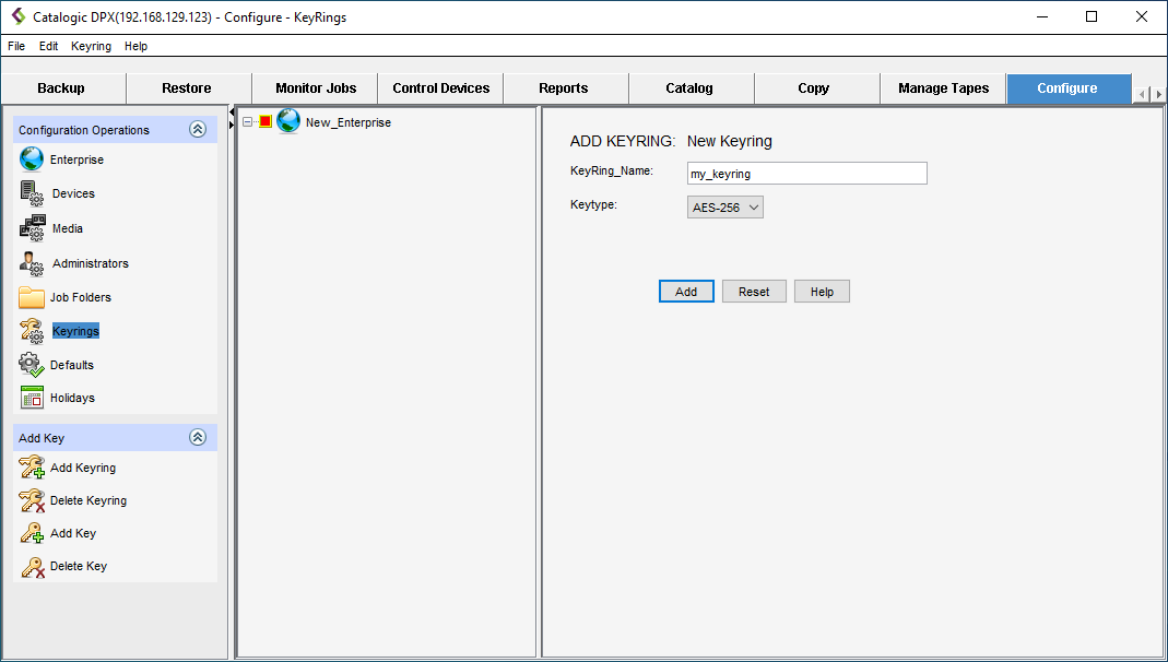 1. Specify the keyring name. Click Add.