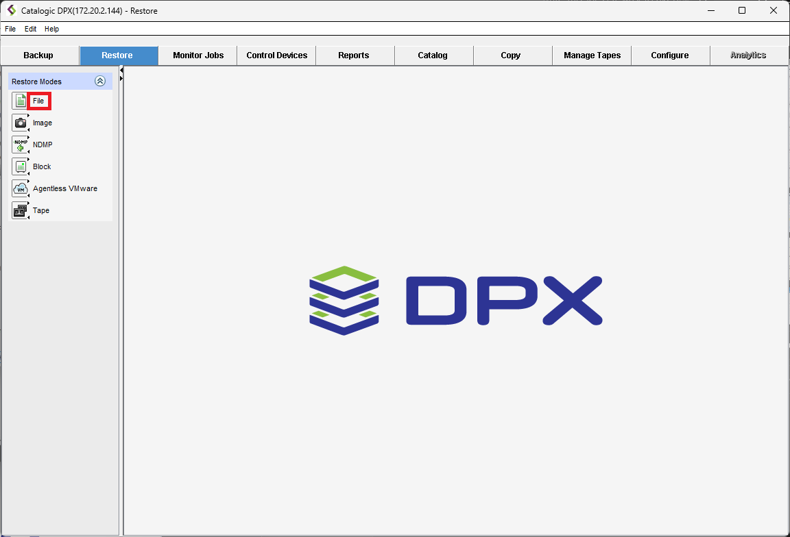 1. In the main desktop interface window, go to the Restore tab, and from the Restore Modes section in the task panel, choose File.