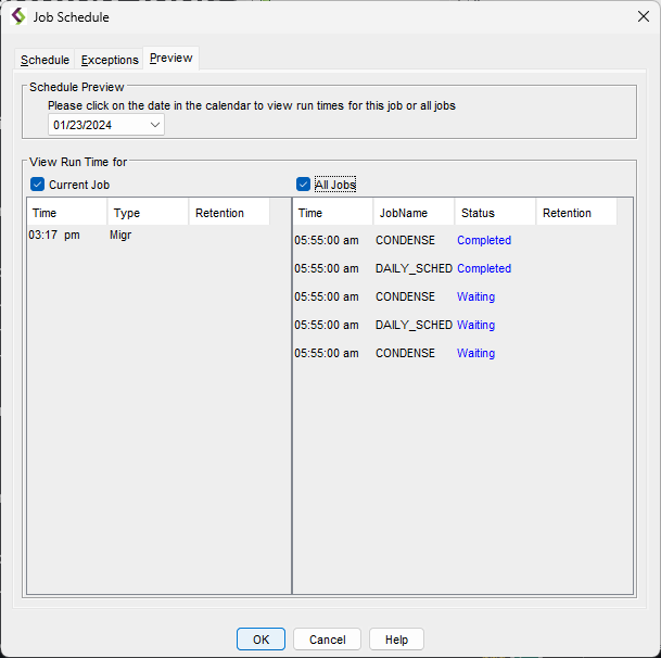 1. Open the Job Schedule dialog box and click on the Preview tab.