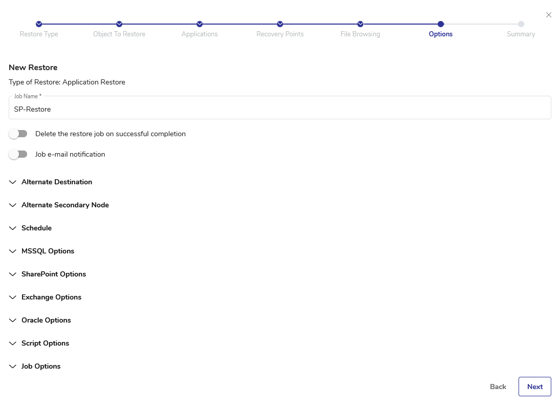 | Toggle on | The restore job defined in this process will be deleted upon successful completion. If the job fails, it will not be deleted. |