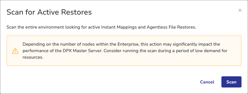The Scan for Active Restores dialog will be displayed.