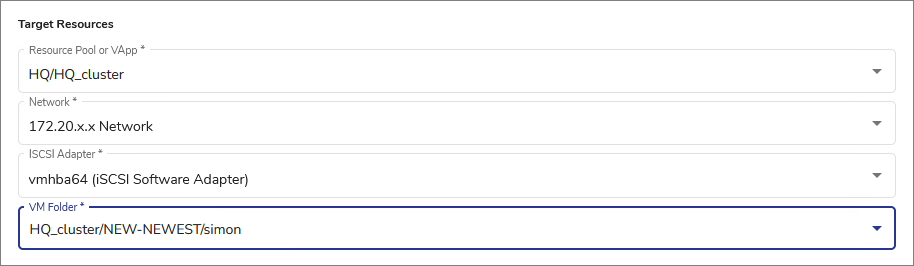 - Select the Target Resources for the new VM.