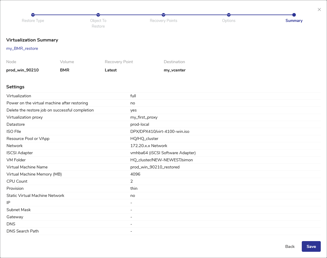 - Select the virtualization proxy server. For more information, see DPX Proxy Server.