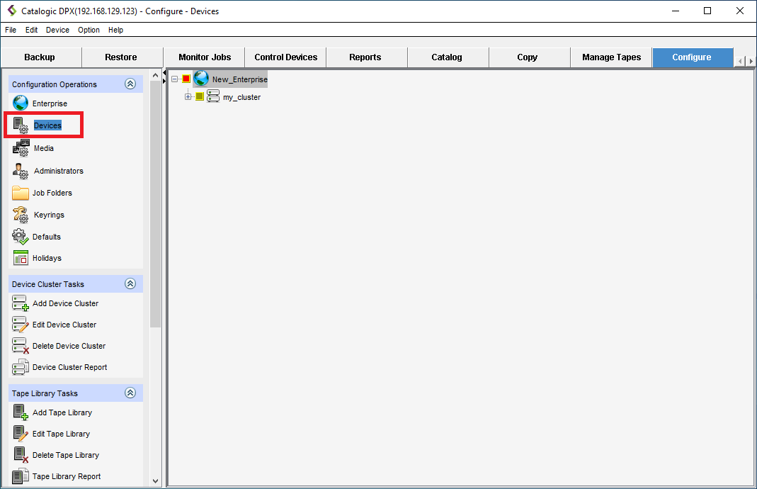 A device cluster is a logical grouping of non-tape library (standalone) backup devices. Follow these steps to add and configure AWS S3 for Agentless VMware and Block archiving.