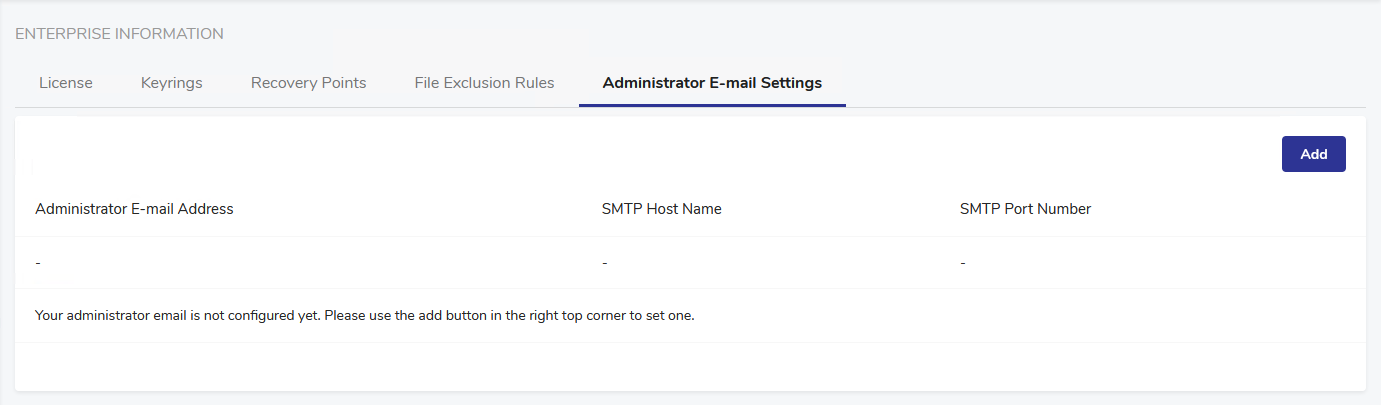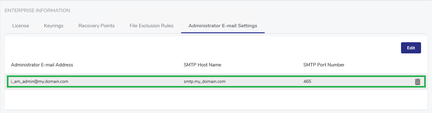 Once the administrator e-mail settings are configured, the Add button is replaced with the Edit button, allowing to edit the configuration.