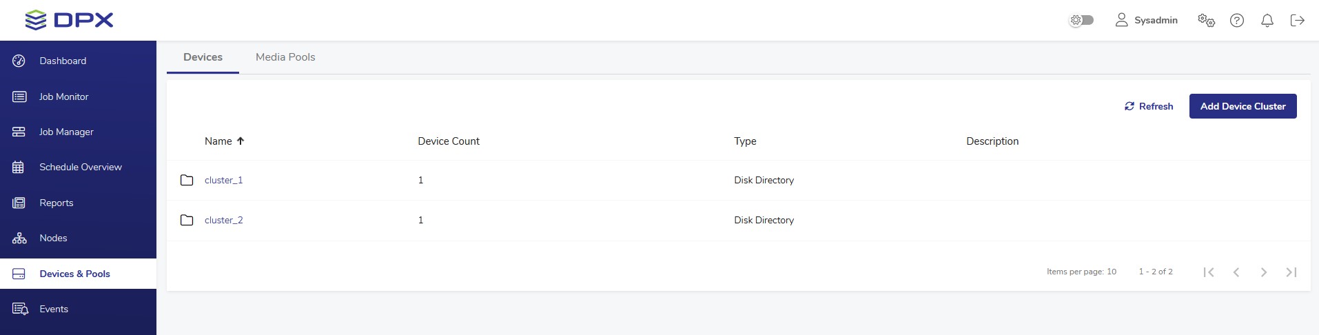 Storage devices (also simply referred to as “devices”) are physical or virtual drives on which media volumes, such as tape cartridges, are processed. Devices are grouped in clusters.