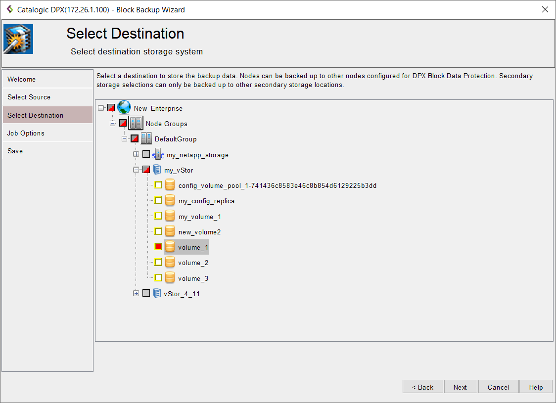 - In the Select Source step, choose the volumes you want to include in the backup.