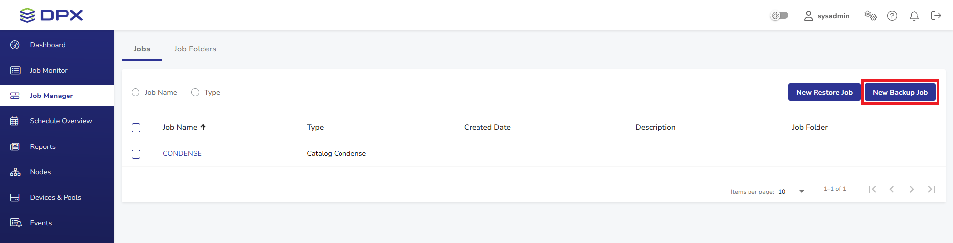 - Select Job Manager in the sidebar. Then click the New Backup Job button in the upper right corner.
