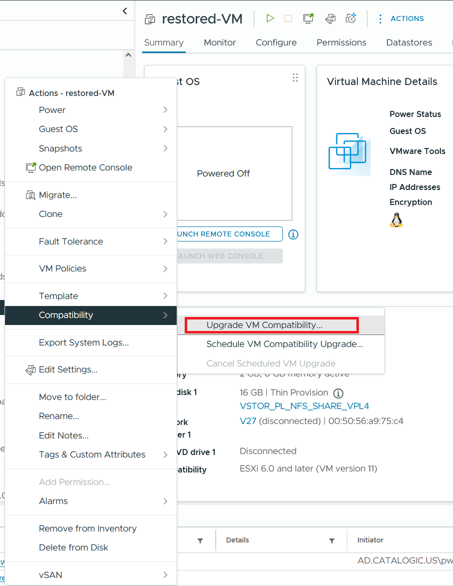 3. Select Compatibility > Upgrade VM Compatibility….
