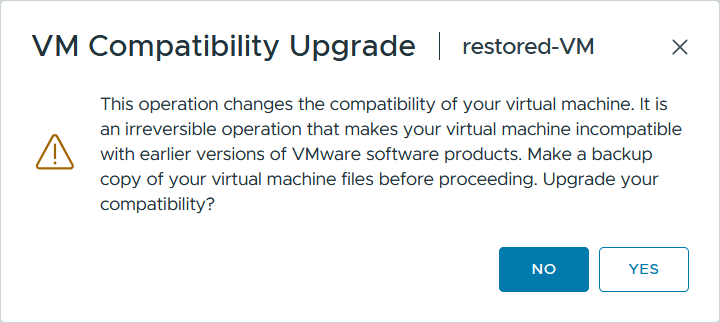 1. Confirm your decision in the VM Compatibility Upgrade dialog.