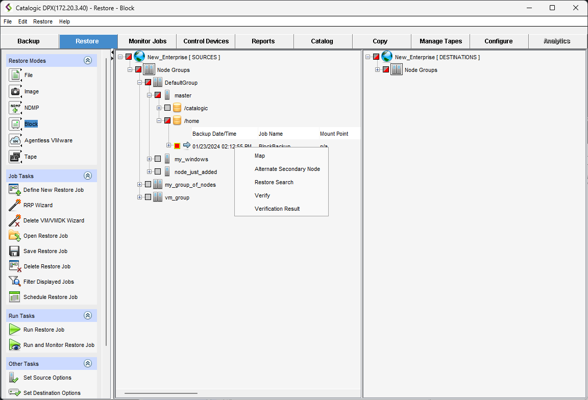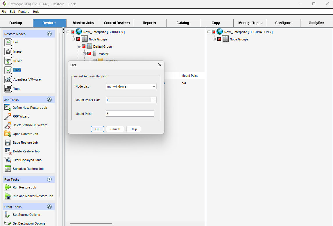1. This action will take you to the view for defining a new restore job. Select the backup instance to map with Instant Access.