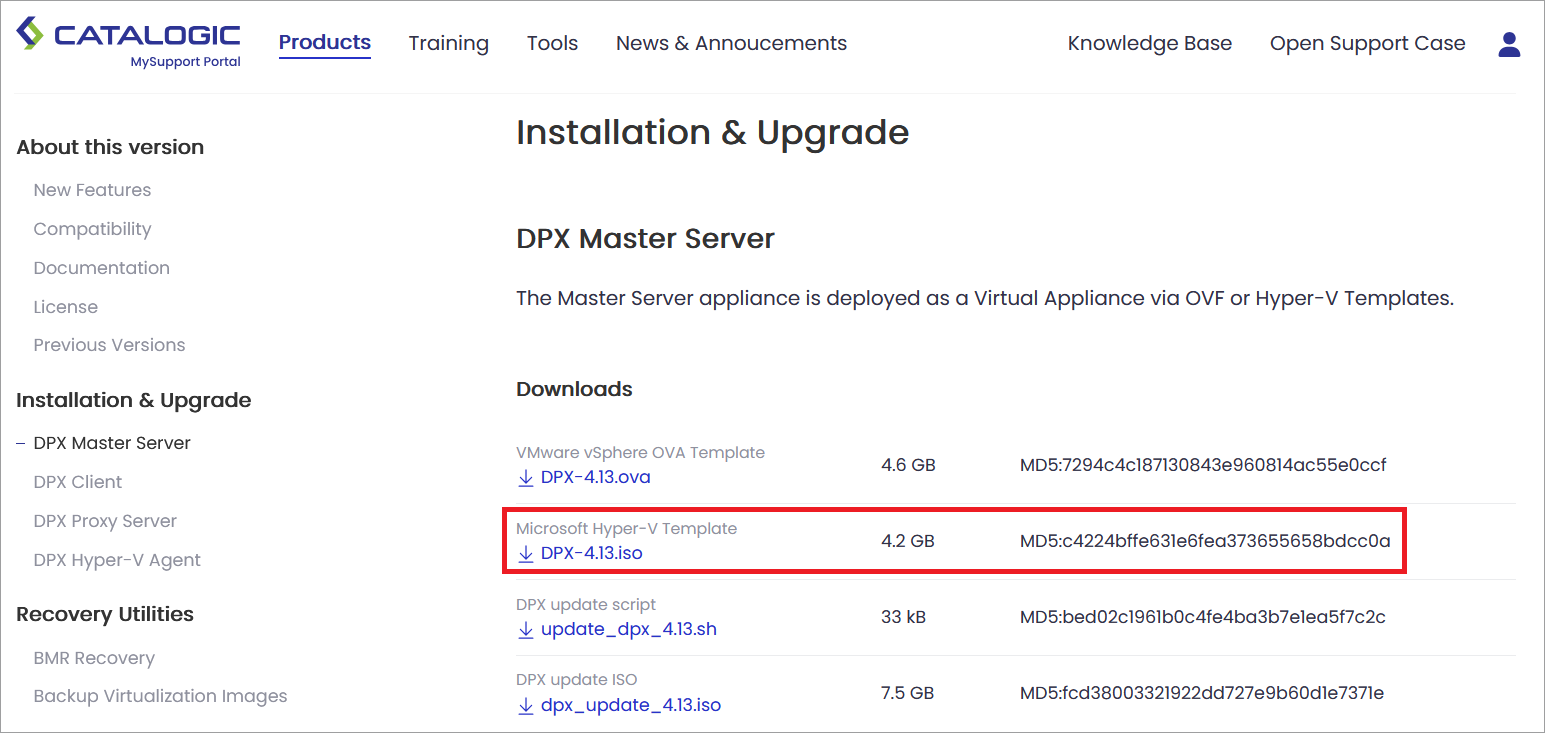 1. Download the .ISO file from the Catalogic MySupport page: