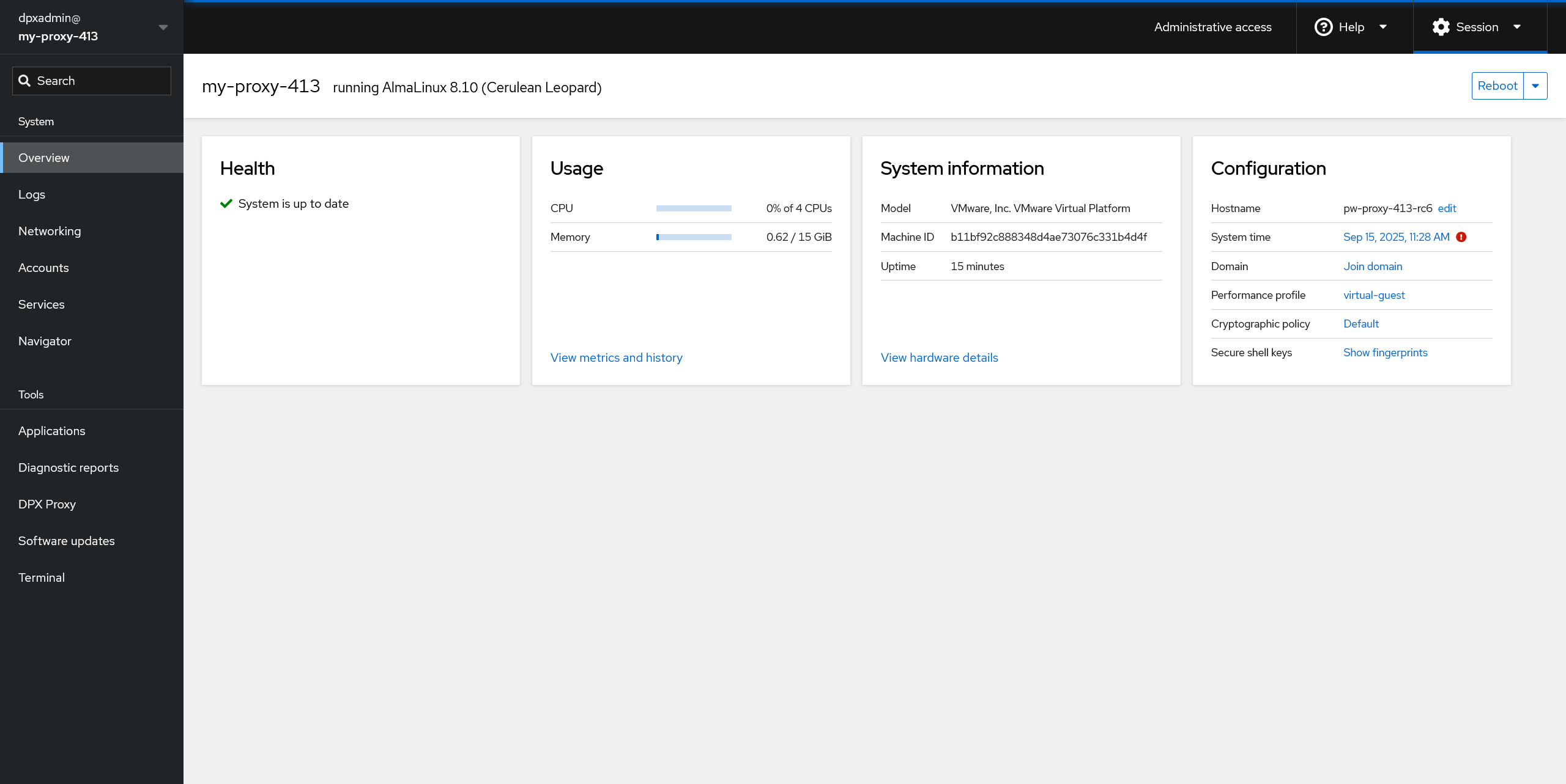 The Catalogic DPX Proxy Server virtual appliance includes the web (HTML5-based) interface. It allows the user to operate and monitor the proxy server from the web browser. The user can also access the Linux shell in the web browser window instead of using an SSH client.