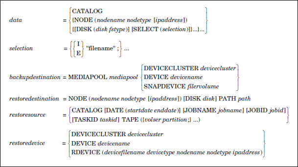 Here is a quick reference to the syntax of these statements. In the following sections, these statements are described in further detail. Here, brackets denote options and braces are used for logical groupings (the brackets and braces are not actually typed). The ellipses denote that the previous expression may be repeated.